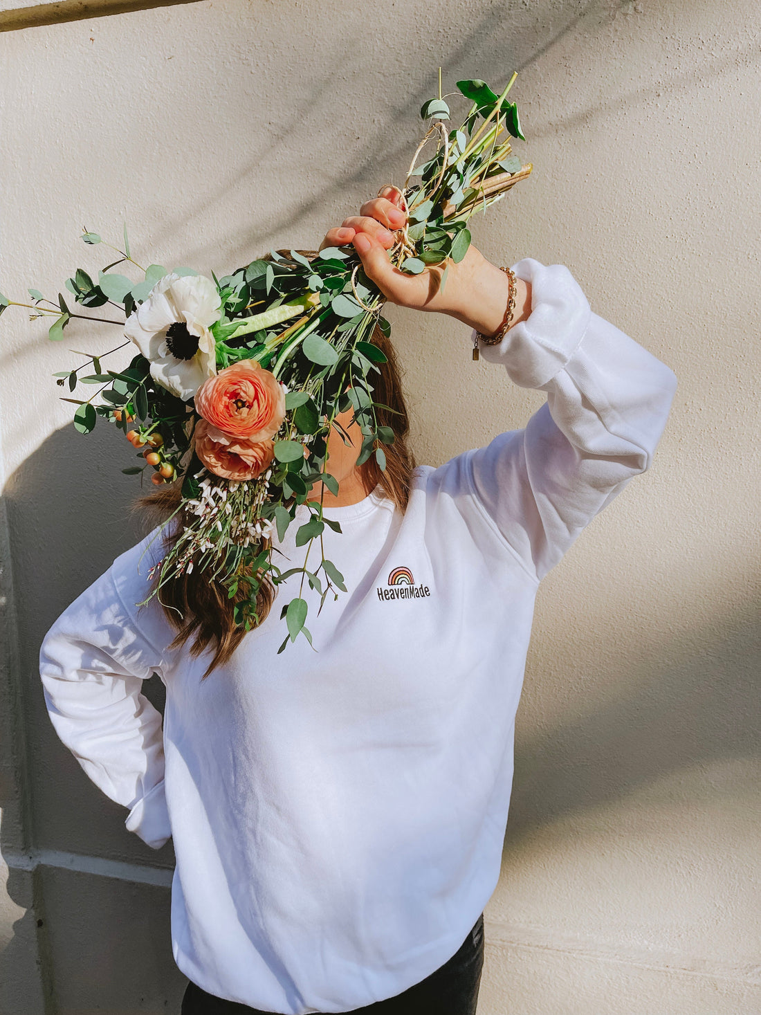 HeavenMade embroidered white crewneck- Christian, Baptism, Birthday gift for him or her