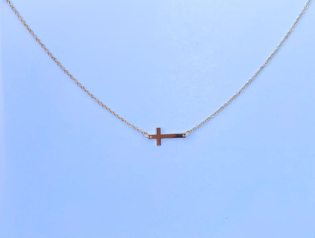 Silver/Gold Plated Sideways Cross Necklace, Christian Jewelry