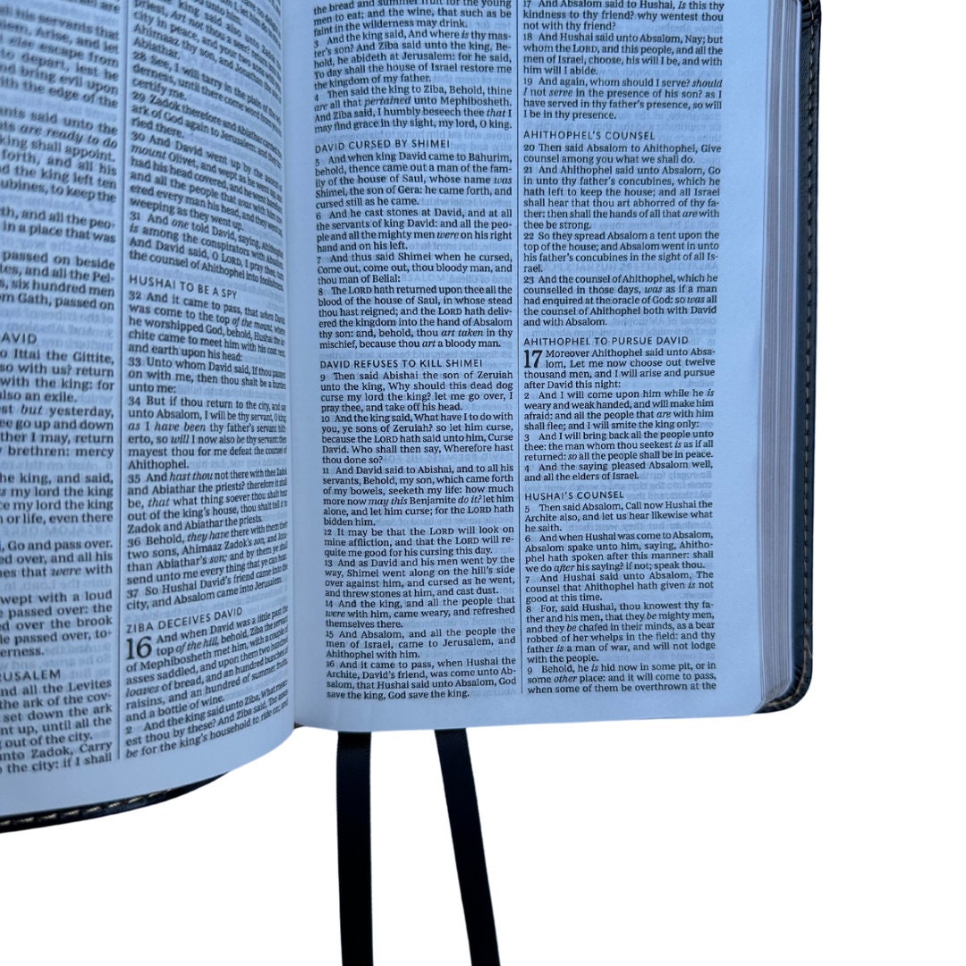 This black KJV compact bible is designed to be convenient for reading and travel.