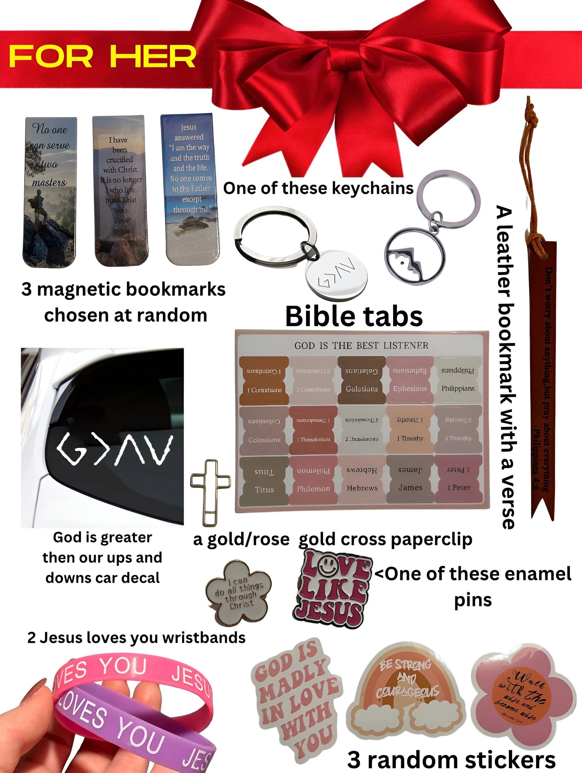 A FOR HER bundle and FOR HIM bundle with items that are faith based.