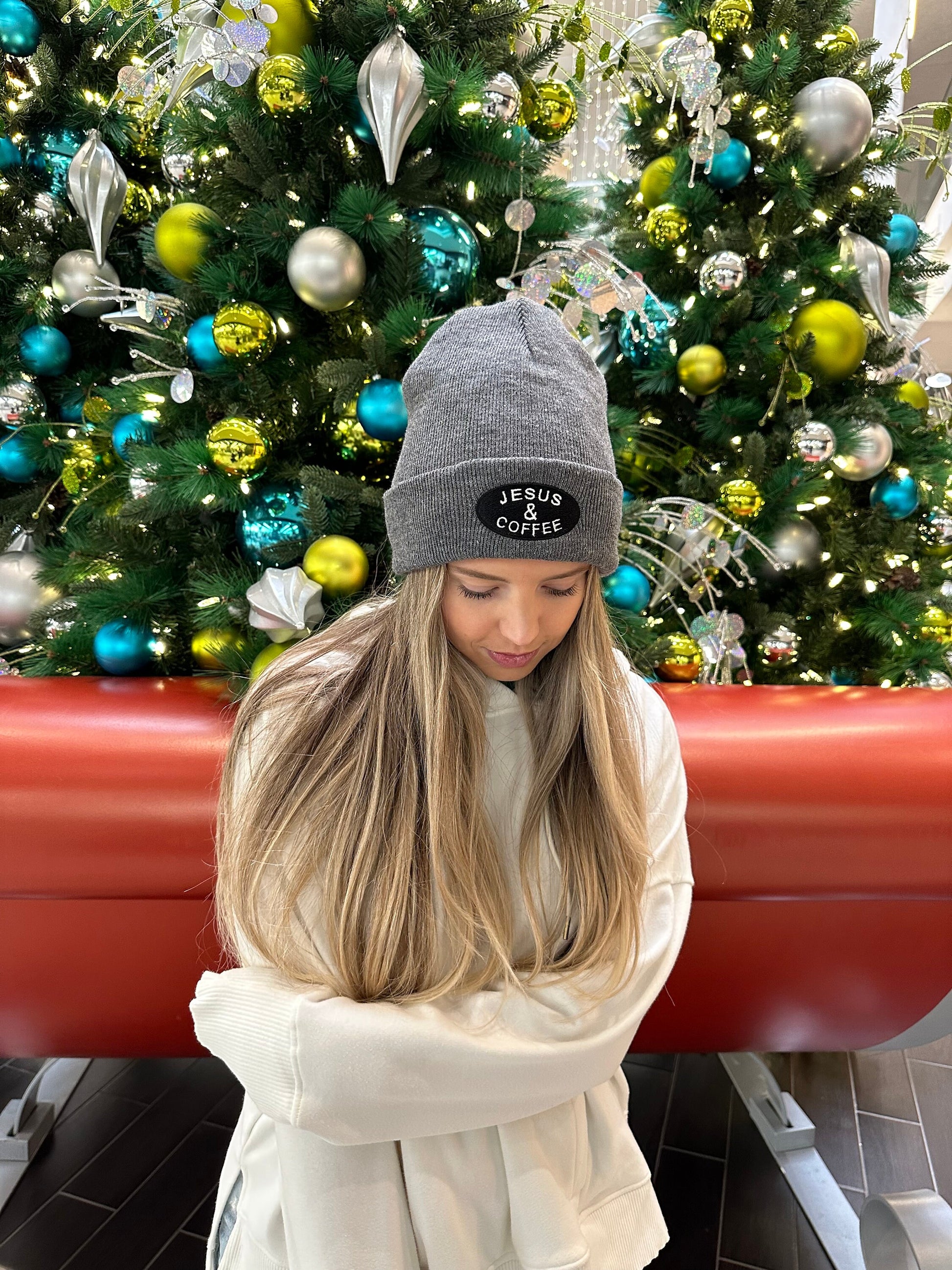 Jesus & Coffee Embroidered Beanie – Knit Cuffed Winter Hat