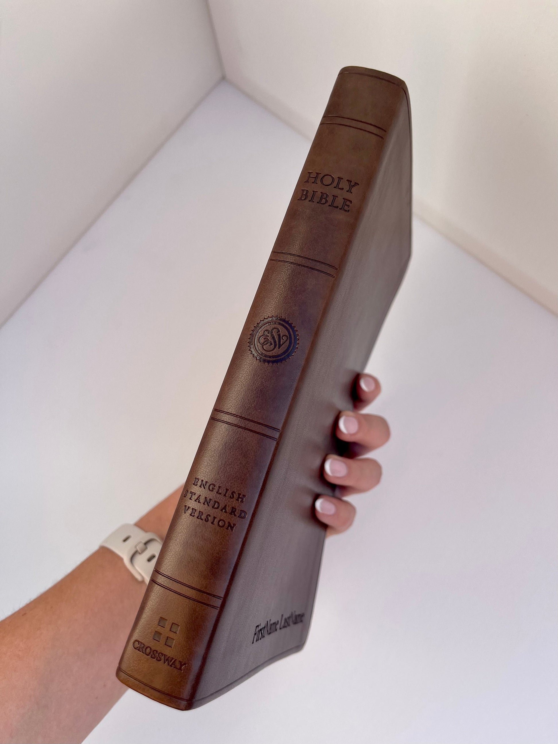 Personalized ESV Bible, Brown Leather Cover, Christian Gift