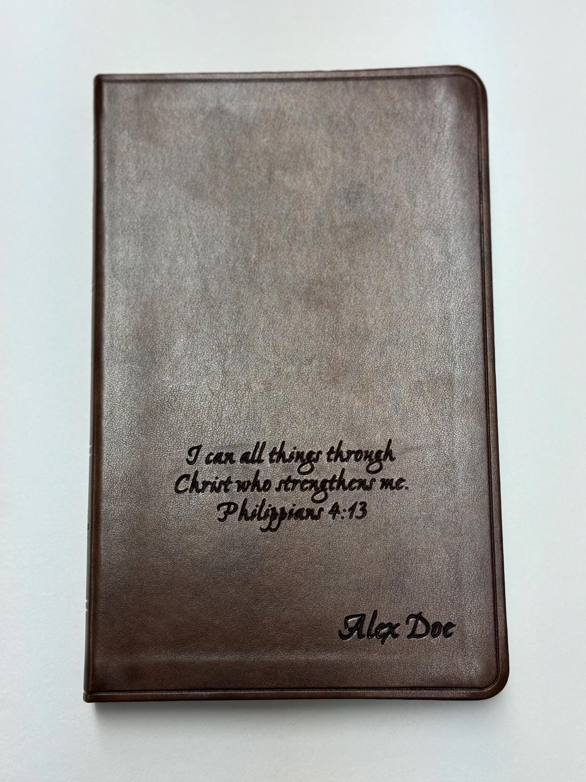 ESV Premium Gift Bible TruTone brown, get it customized and engraved by having a name or verse engraved on the front cover, this is a perfect gift for Him / Her, Mom, Dad, son, daughter, grandma, grandpa, cousin, spouse, fiancé! Add a personal touch to your new Bible!
