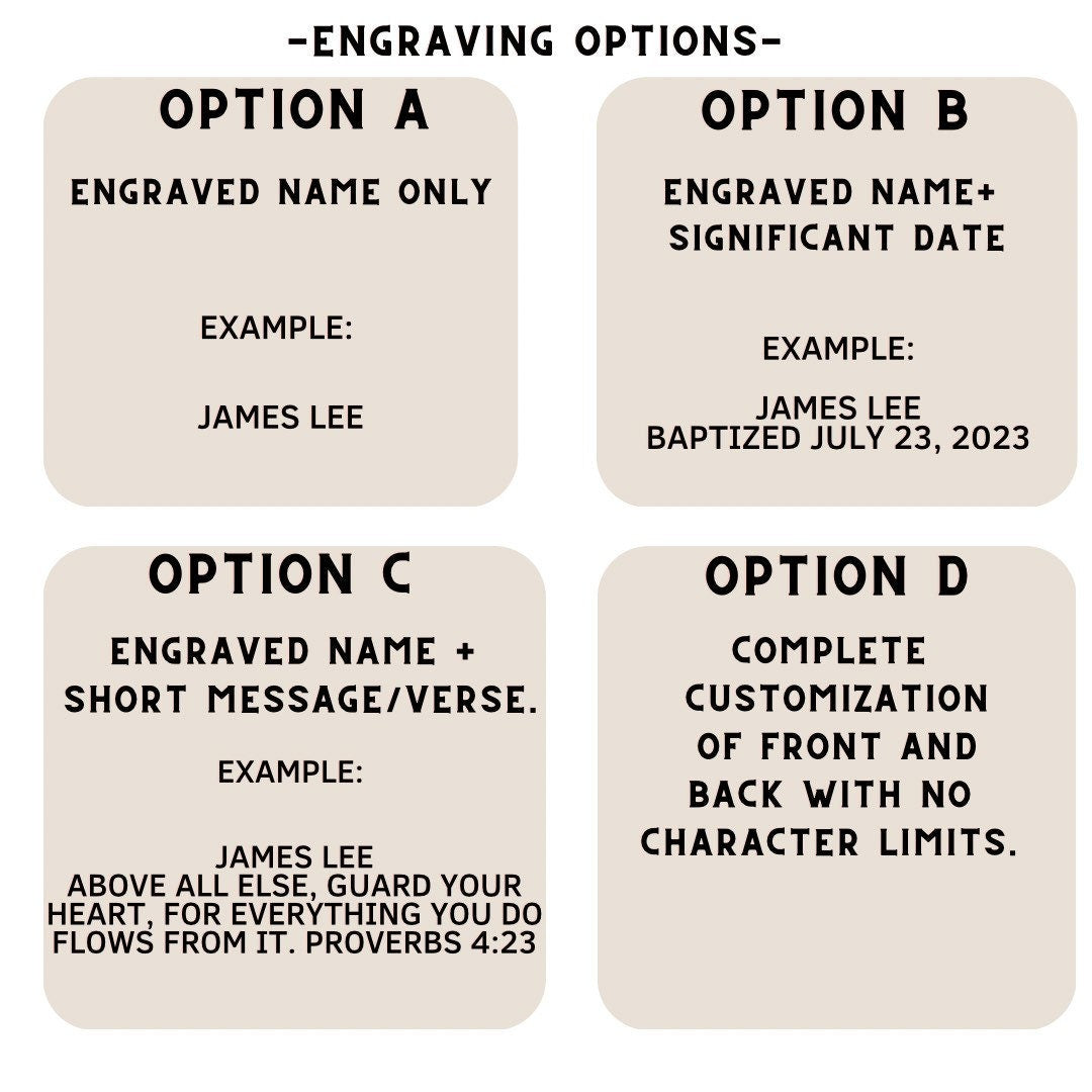 Select ADD engraving at checkout and add the name you would like engraved in the personalization box.